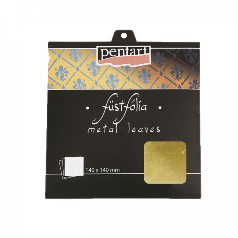 Hárky z veľmi jemnej fólie. Práca s nimi je veľmi jednoduchá a výsledný efekt prekrásny. Najprv sa na povrch nanesie špeciálne lepidlo na metálovú fóliu. Nechá sa zaschnúť a potom sa priložia jednotlivé hárky na povrch. Na dosiahnutie pekného konečného efektu uhládzajte hárky suchým štetcom dovtedy, kým celá plocha nie je pokrytá a kým neopadali všetky nadbytočné časti. Na záver možno používať len lak na báze riedidla!
