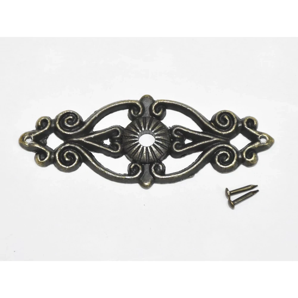 Dodajte svojim šperkovniciam a zásuvkám jedinečný, remeselný charakter s naším ozdobným kovovým prvkom s ornamentmi. Tento výnimočný kúsok evokuje vzhľad kovanej práce, čím pridáva vašim projektom punc autenticity a historickej krásy.
