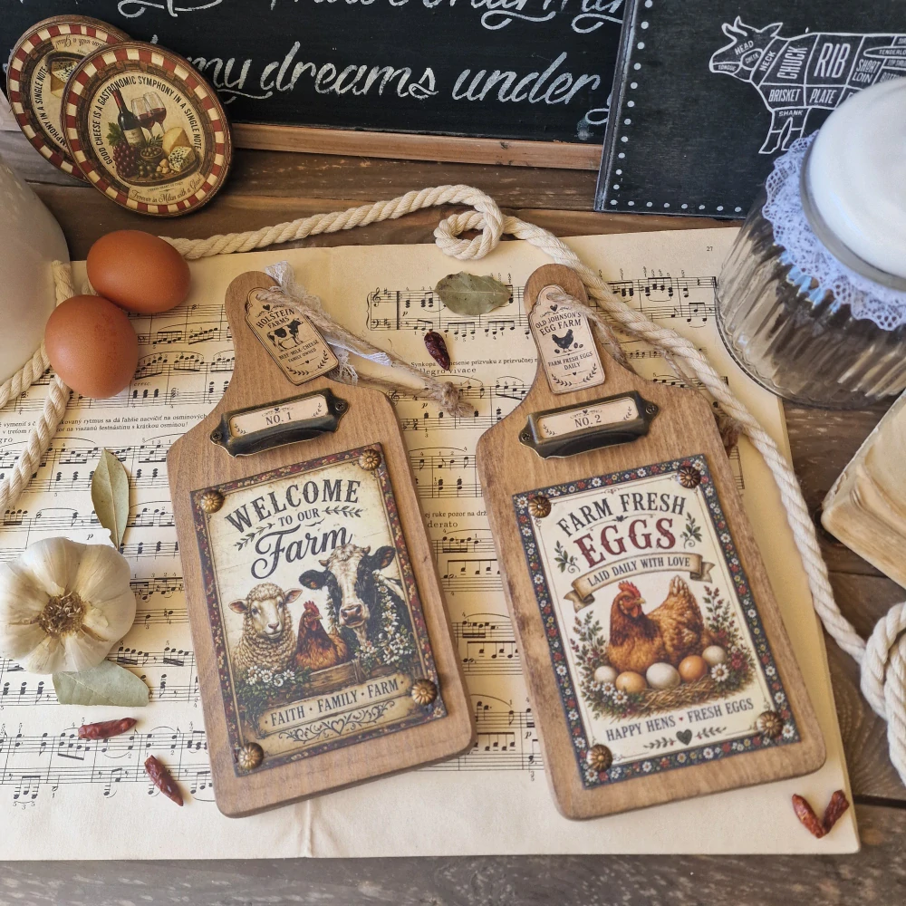Country farmhouse krajacie dosky, ktoré som zdobila pomocou najnovších ryžových papierov vo vidieckom štýle z môjho e-shopu 🌾🐓